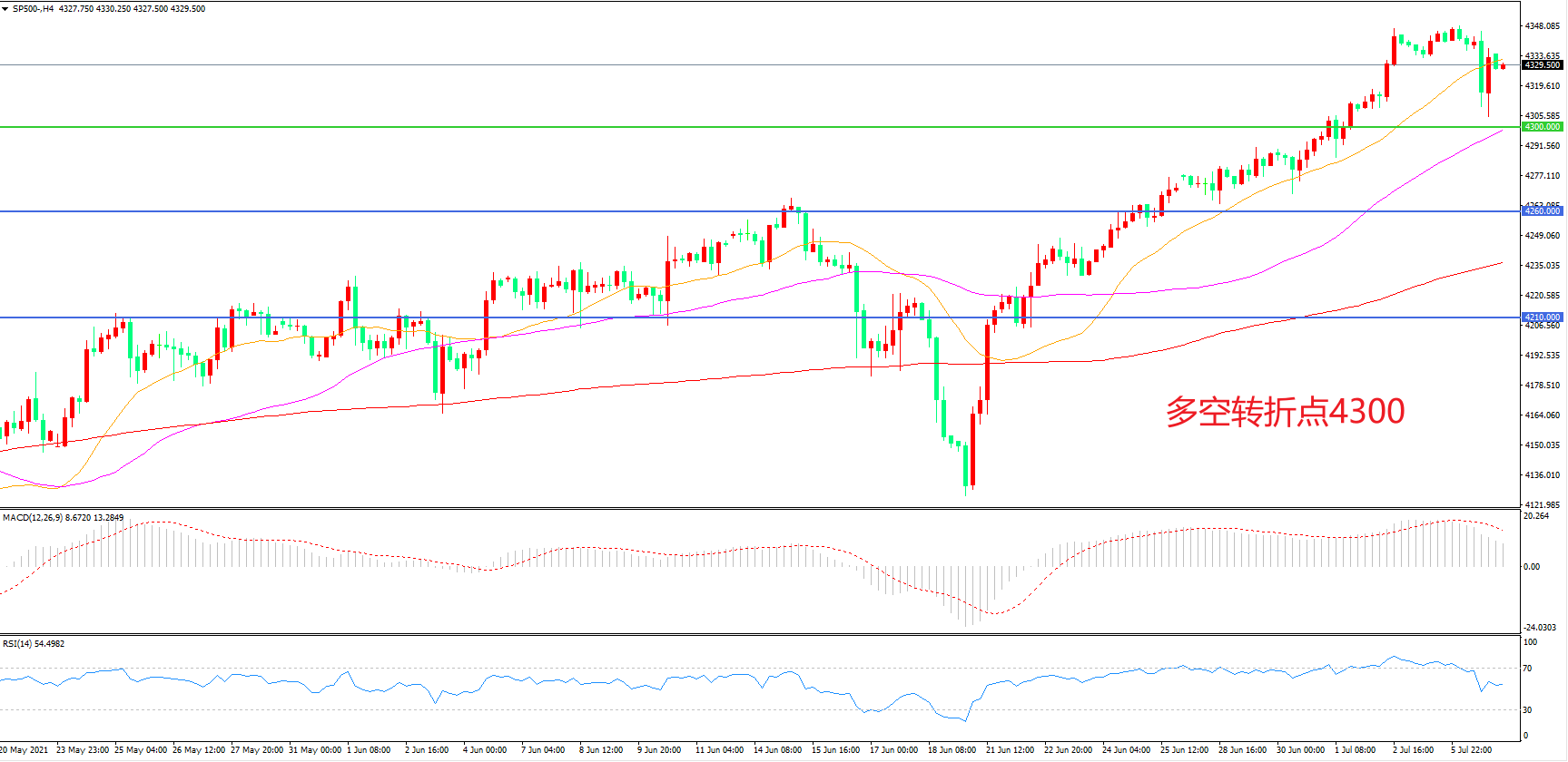 多空转折点:4300.00