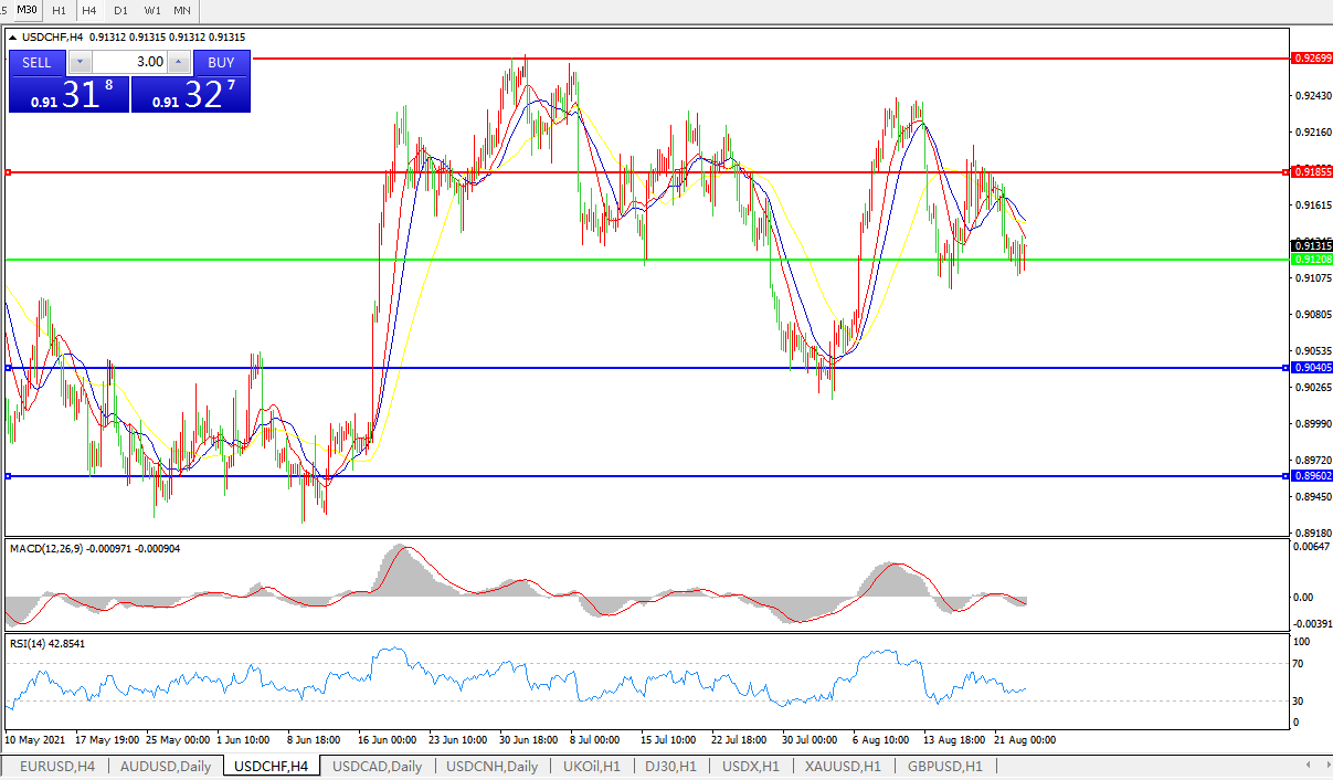美元兑瑞郎USDCHF 4小时图:
