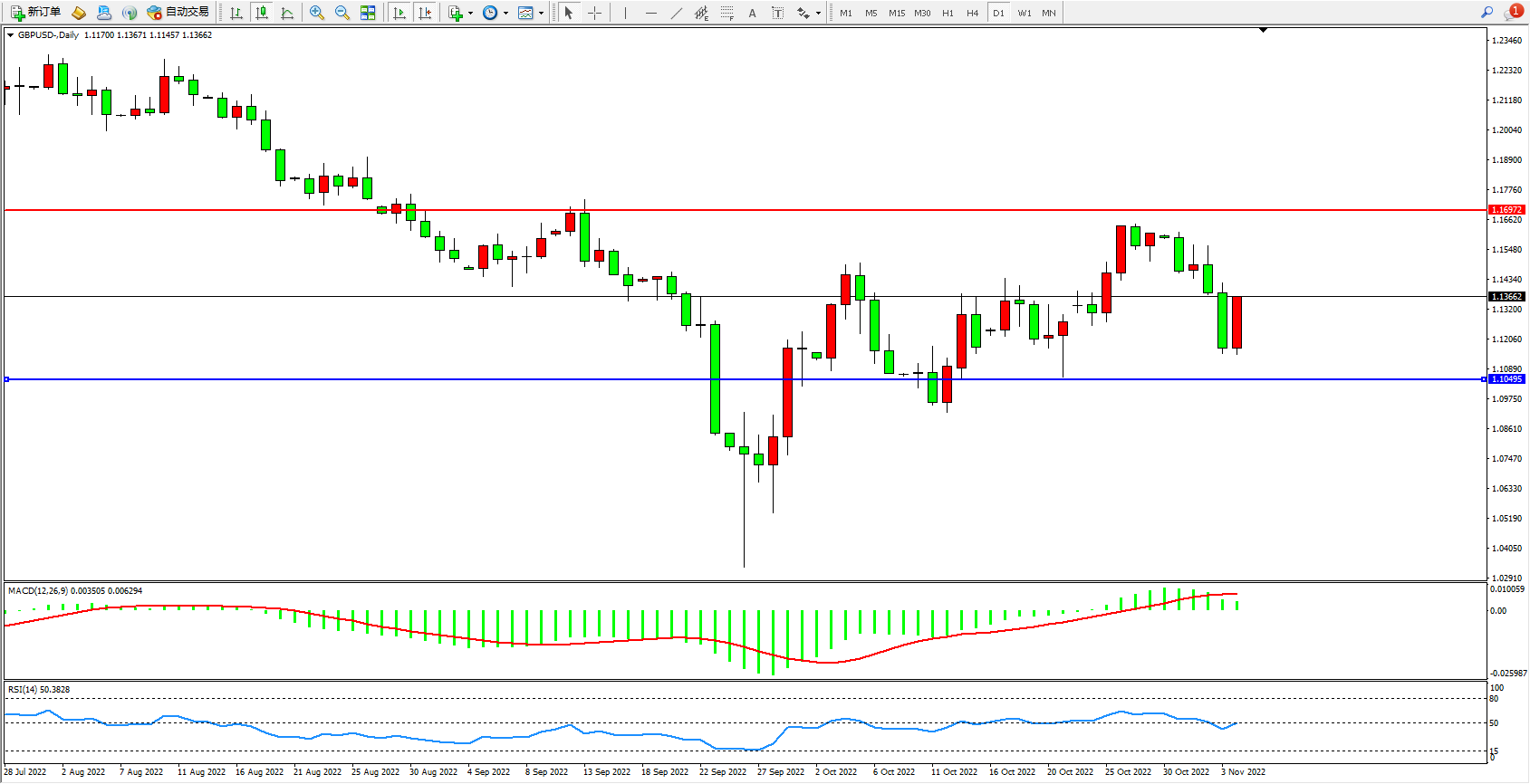 英镑兑美元日K线图显示: